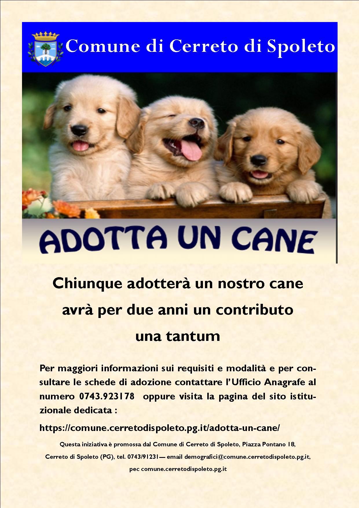 PER MAGGIORI INFORMAZIONI VISITA LA PAGINA DEL SITO WEB ISTITUZIONALE DEDICATA https://old.comune.cerretodispoleto.pg.it/adotta-un-cane/