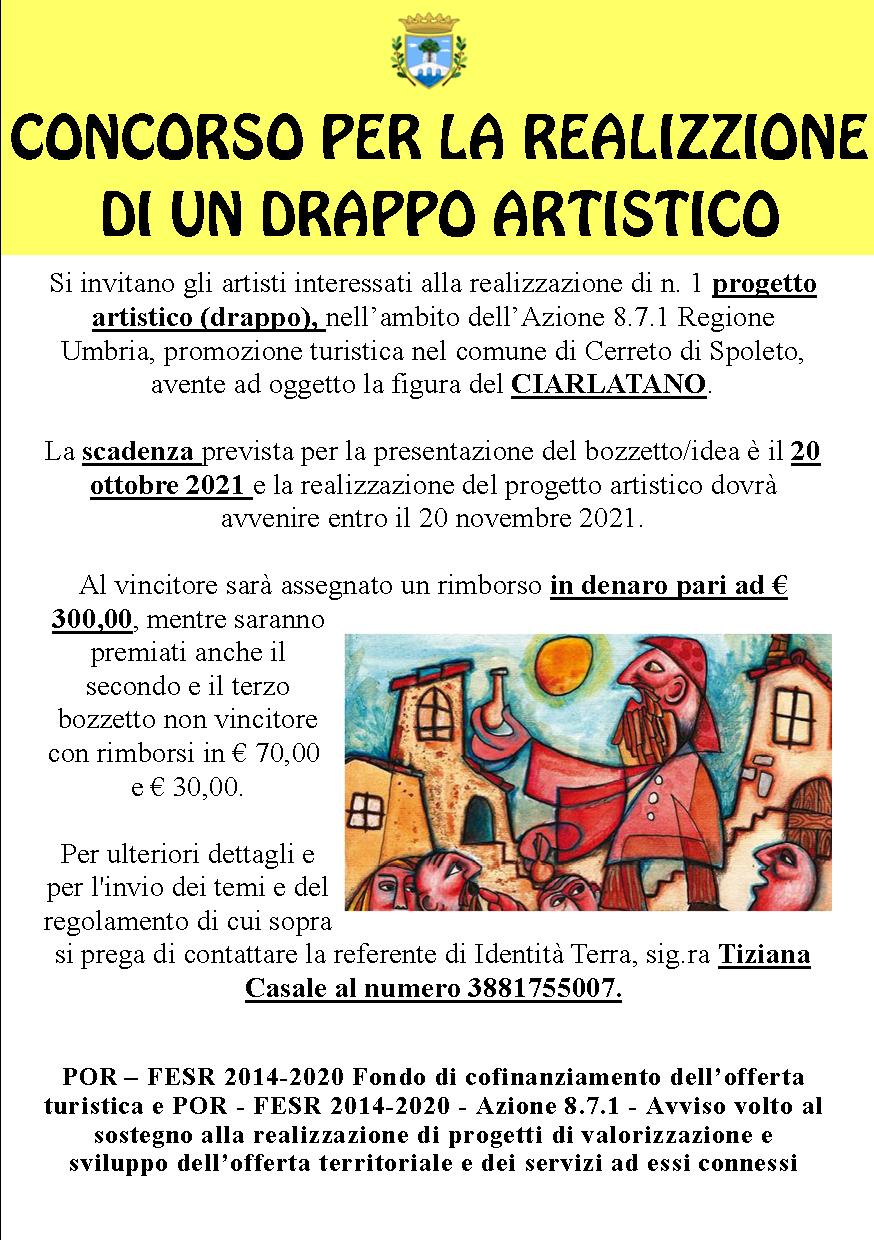 - POR – FESR 2014-2020 Fondo di cofinanziamento dell’offerta turistica e POR – FESR 2014-2020 – Azione 8.7.1 – Avviso volto al sostegno alla realizzazione di progetti di valorizzazione e sviluppo dell’offerta territoriale e dei servizi ad essi connessi – Proposta di partecipazione al Concorso per la realizzazione di progetti artistici