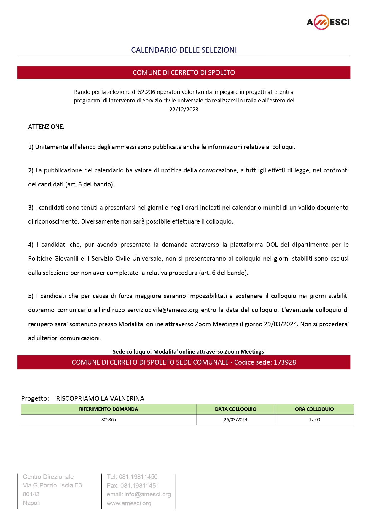• Servizio Civile Bando 2023 – Calendario dei colloqui