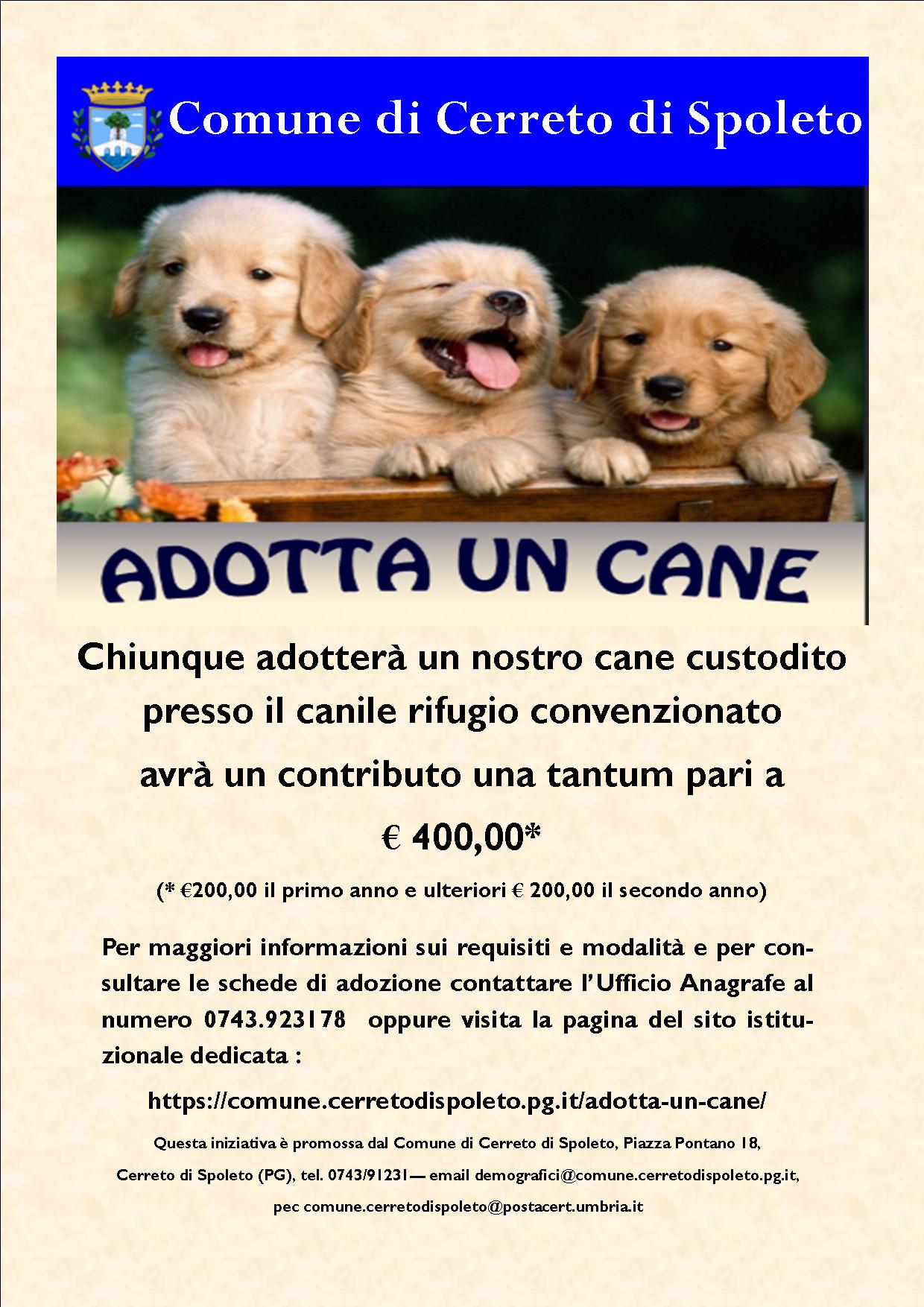 Con Deliberazione del Consiglio Comunale n. 23 del 06.07.2020 è stato approvato il Regolamento comunale per l’affidamento e l’adozione dei cani randagi.